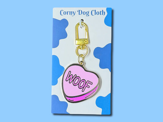 WOOF Pink Conversation Heart Dog Tag