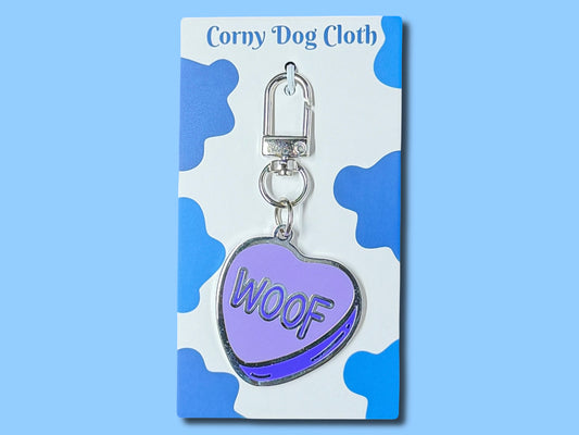 WOOF Purple Conversation Heart Dog Tag