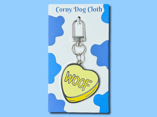 WOOF Yellow Conversation Heart Dog Tag