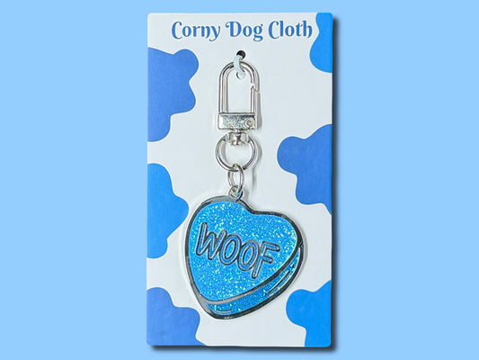 WOOF Blue Conversation Heart Dog Tag