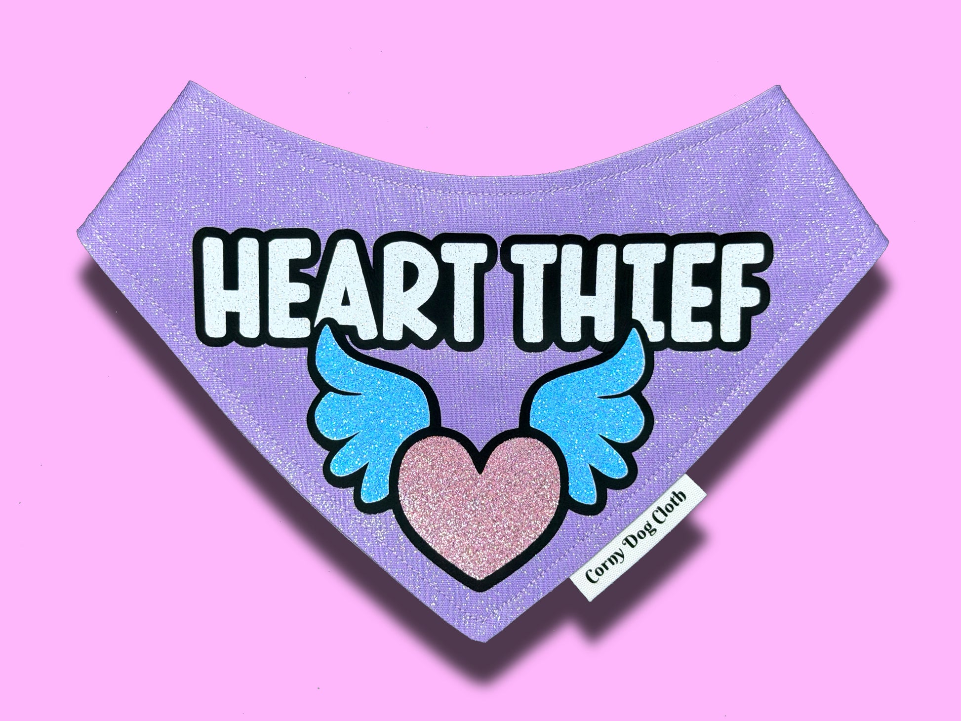About: Front - Pre dyed lilac glitter fabric with heat transfer vinyl