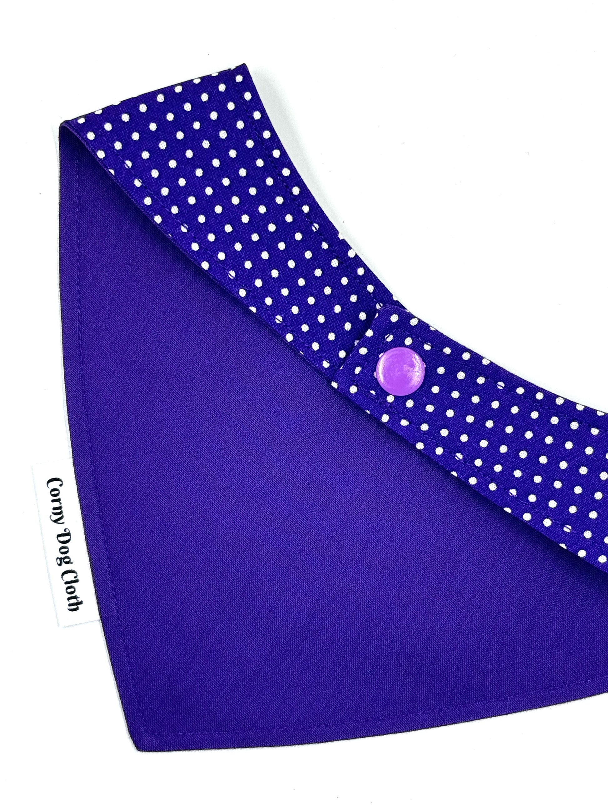 Introducing this adorable purple polka dot "Happy Howloween" dog bandana, a whimsical accessory for your furry friend this Halloween season! This bandana features a fun design with a wolf howling at the moon, adding a touch of spooky fun to your pet's ensemble. The snap-on style ensures easy wear and comfort for your beloved companion.
