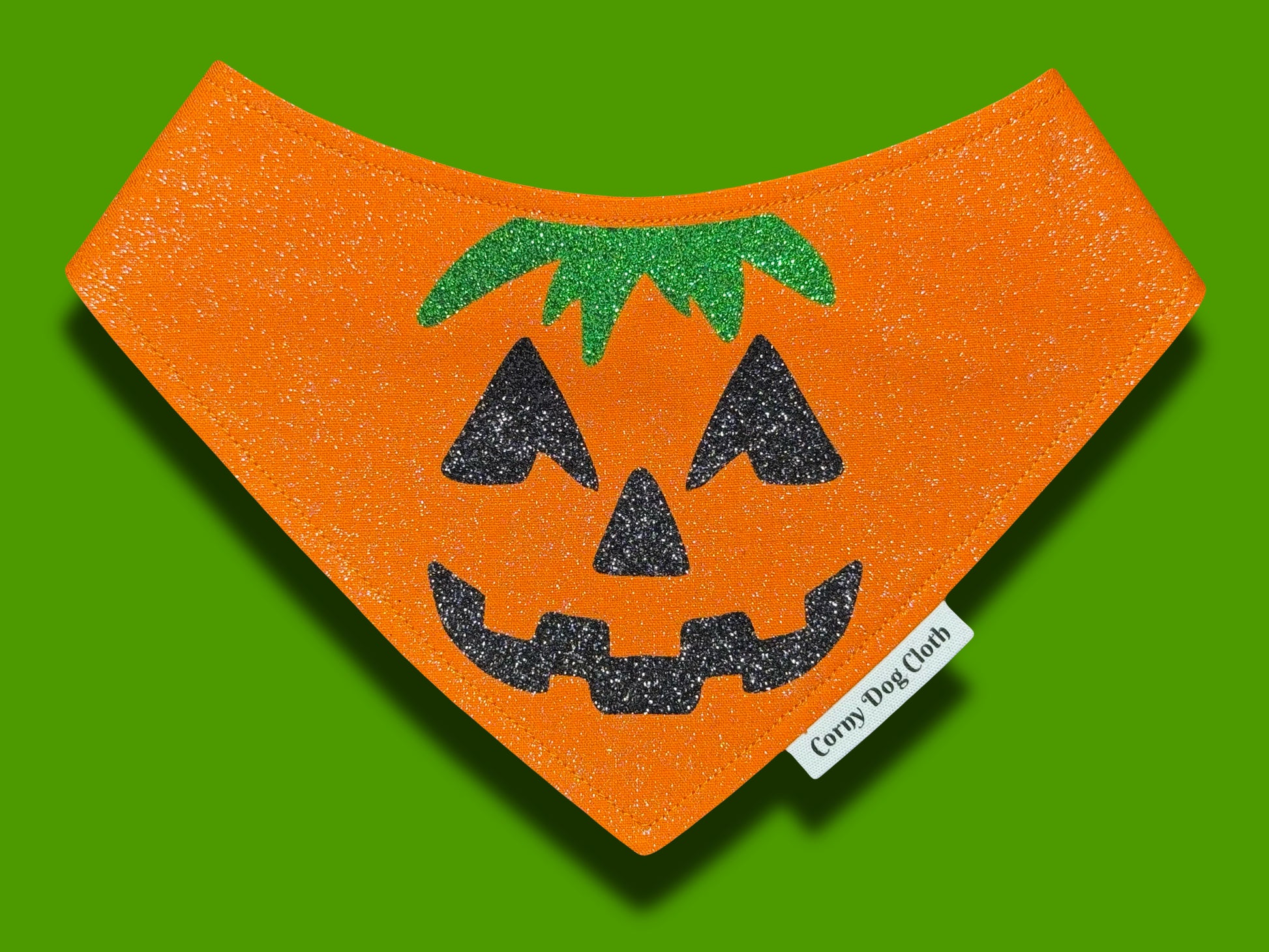Introducing this enchanting orange glitter Jack-o'-Lantern dog bandana, a spooktacular accessory for your furry friend! This vibrant orange bandana features a charming glittery jack-o'-lantern design, adding a touch of Halloween magic to your pet's ensemble. The snap-on feature ensures easy and secure wear, allowing your pup to show off their festive spirit in style. Get ready to add a dash of whimsy to your pet's look with this adorable bandana!